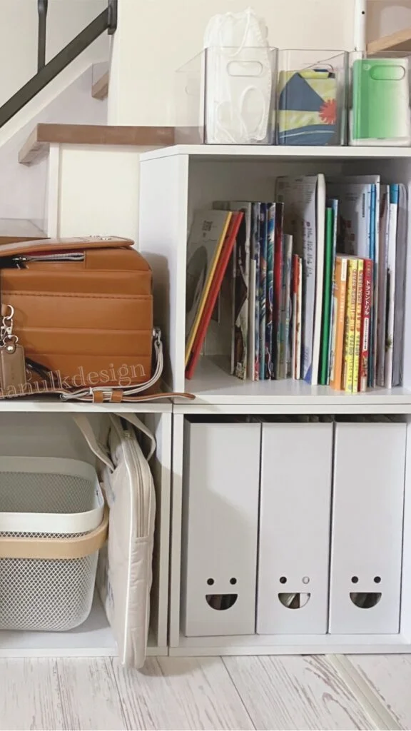 つまり、学用品収納は帰宅後のことだけでなく、朝の支度のことも考えて工夫するといいと思います。